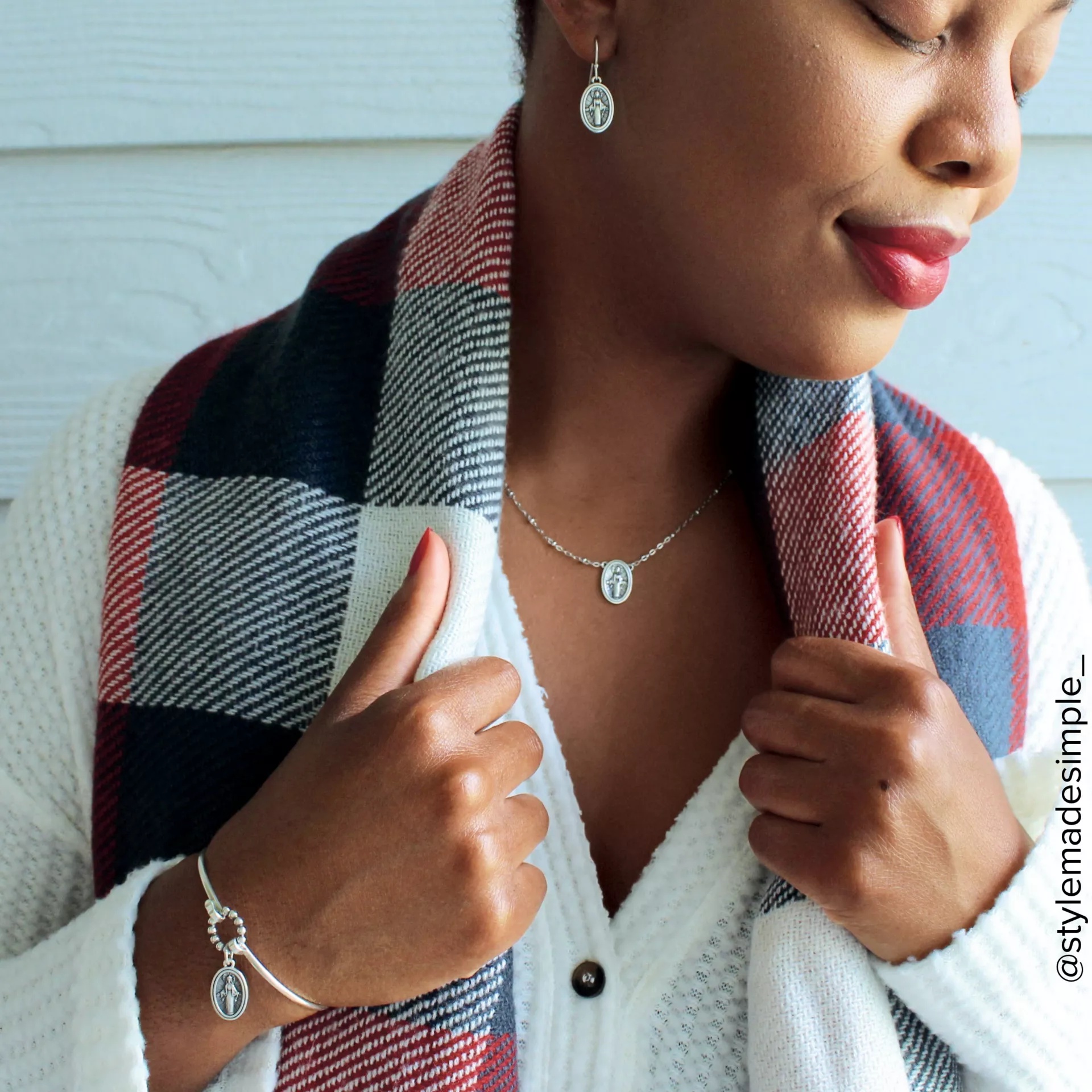 This design is retiring from our active line and once the remaining stock is sold, it will no longer be available. The Virgin Mary Hook-On Bracelet blends past and present into a contemporary statement of grace. Standing in a traditional pose of reverence with a starburst behind her, the image of Mary is reminiscent of a treasured family heirloom. The ten beads crafted onto the loop allude to the 10 Hail Mary prayers in each decade of the Rosary as a further proclamation and connection of faith and devotion. Available in sterling silver or 14K gold and various sizes, this bracelet can be engraved on the back of the charm. Engrave names, dates, messages or symbols in up to three lines. Pair this bracelet with other pieces in our Virgin Mary Collection.