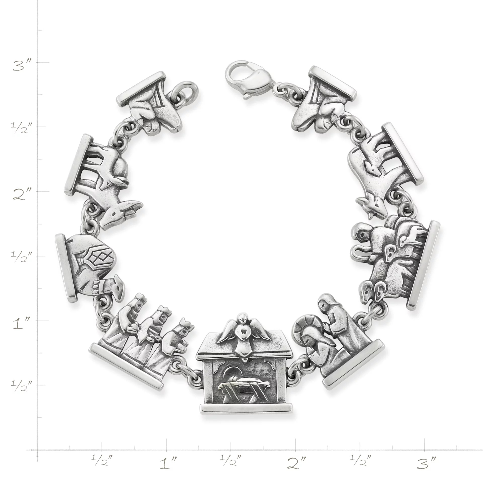 With artistic detail and sculptural dimension, each link of this bracelet tells the story of the birth of Christ.